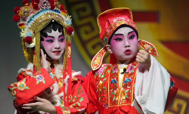งิ้วมาจากคำว่า อิว ในสำเนียงแต้จิ๋วที่หมายถึงดีหรือยอดเยี่ยม จุดเด่นของงิ้วคือนักแสดงแต่งหน้าทาปากด้วยสีจัดจ้าน เวลาแสดงจะออกสีหน้าท่าทางอย่างขึงขังเอาจริง ทั้งอารมณ์เศร้า โกรธ หรือต่อสู้ ประกอบการร้องเพลงและบทสนทนา แม้คนไม่รู้ภาษาจีนก็ซึมซับอารมณ์ได้ จนมีสำนวนไทยว่า ออกงิ้ว หมายถึงการแสดงสีหน้าท่าทางโกรธอย่างรุนแรง